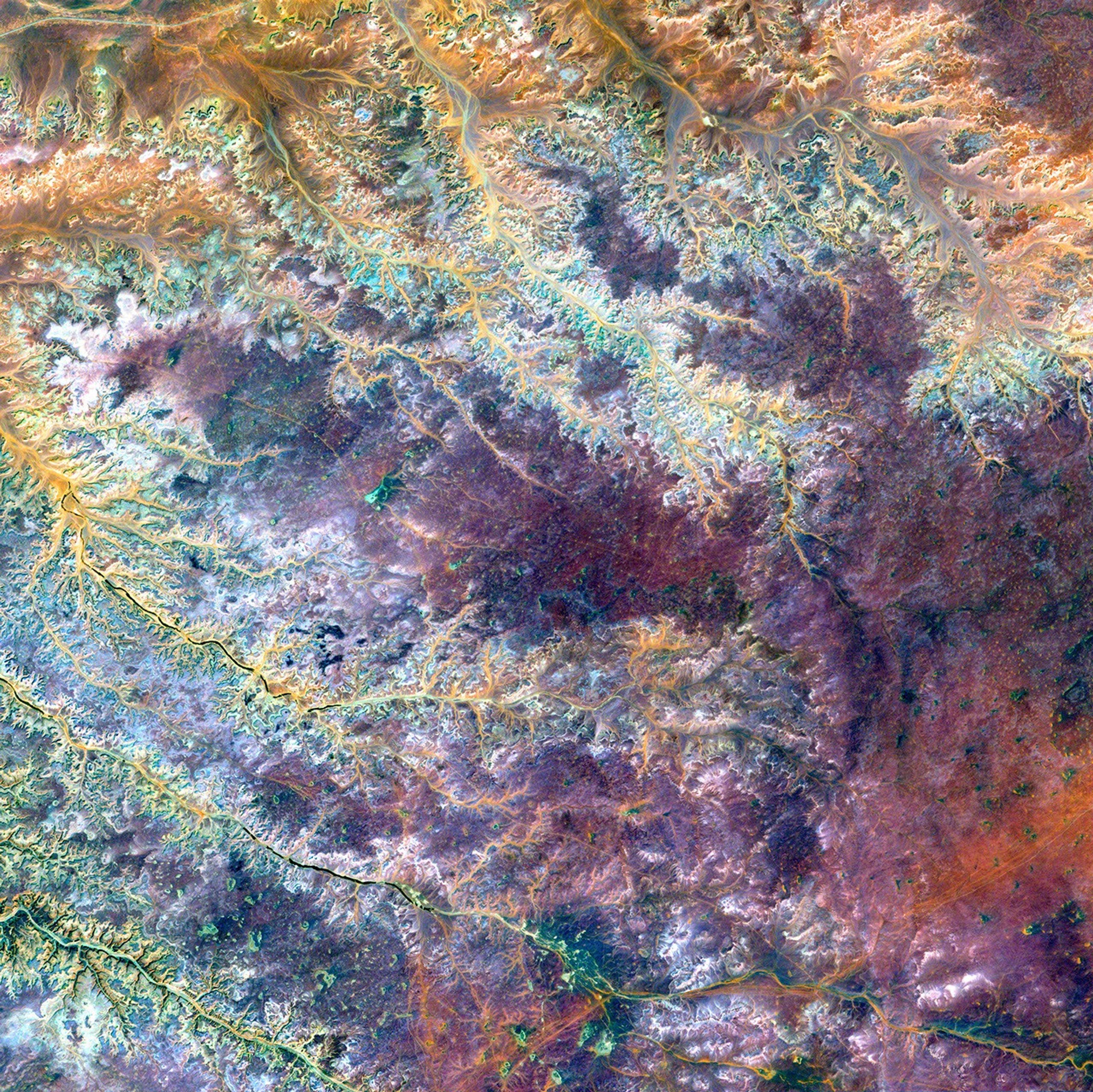 This scar on an arid landscape is the dry riverbed of the Ghadamis River in theTinrhert Hamada Mountains near Ghadamis, Libya.