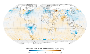 In addition to gases and clouds, Earth’s atmosphere contains tiny liquid and solid particles called aerosols. Aerosols influence air quality and public health, and they can influence climate by reflecting or absorbing sunlight and by changing where and when clouds form. Aerosols include sea salt, dust, and volcanic ash, as well as soot, sulfates, and other particles produced by people burning fossil fuels. Natural and human-caused fires are also significant sources of aerosols.