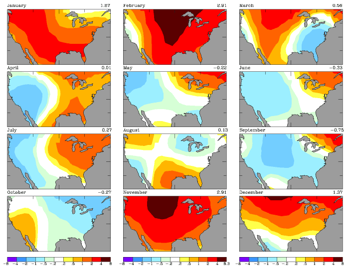 The temperature anomalies fluctuate substantially from month to month, as illustrated for the United States in Figure 4.
