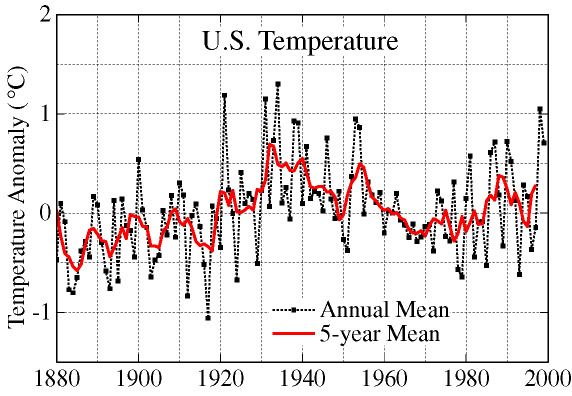 The temperature in the United States was also warm, about 0.7°C above the 1951-1980 average (Figure 3). 1999 was approximately the 10th warmest year of the century. The warmest years in the United States occurred during the dust bowl era, with 1934 being the warmest year.