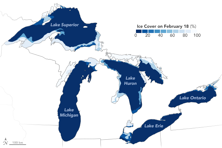 NASA Earth Observatory images by Joshua Stevens, using VIIRS data from NASA EOSDIS/LANCE and GIBS/Worldview and the Suomi National Polar-orbiting Partnership, and ice cover data from NOAA/Great Lakes Environmental Research Laboratory. Story by Kathryn Hansen.
