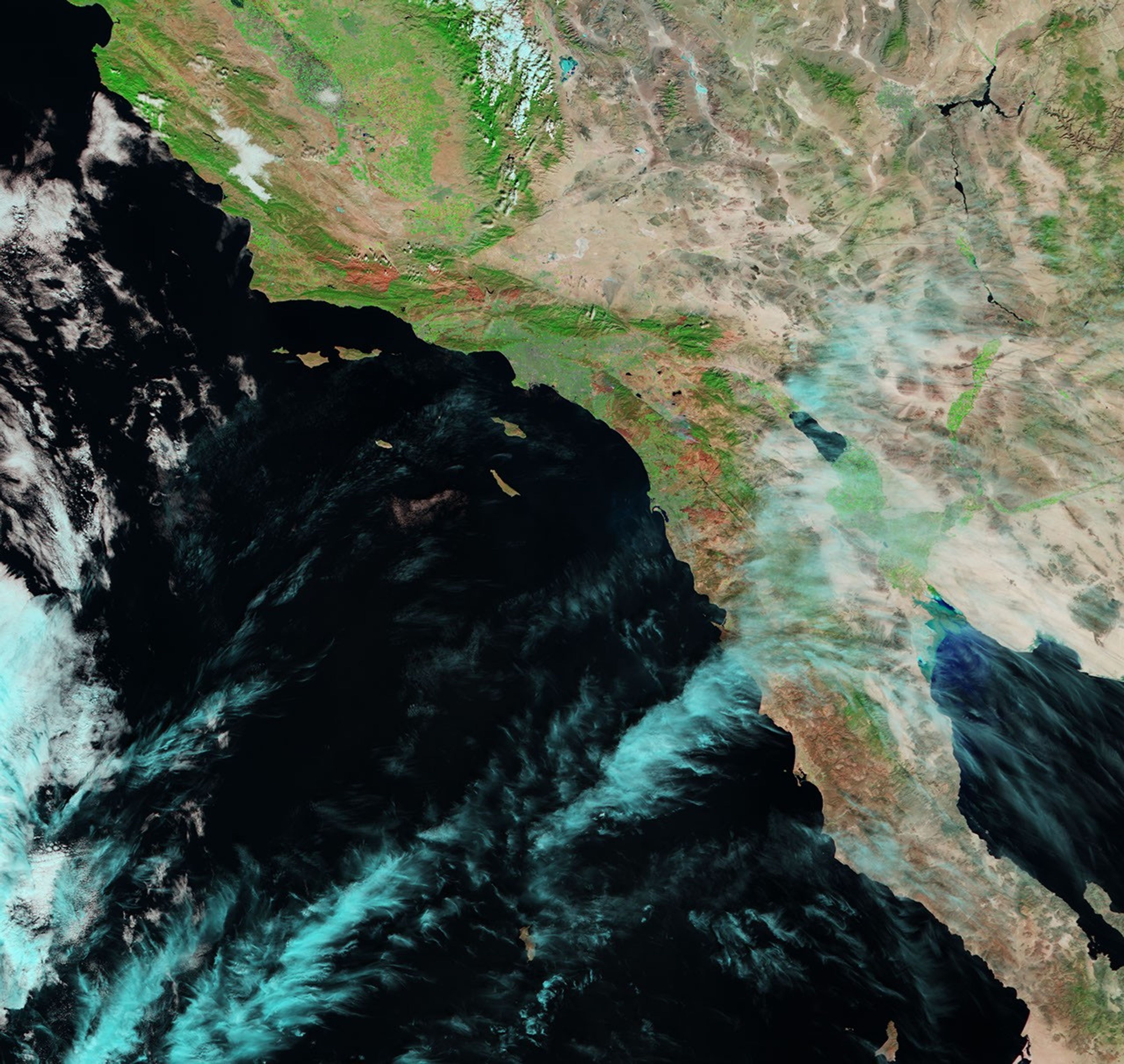 In late October 2007, a firestorm exploded across southern California. Fueled by dry vegetation and powerful Santa Ana winds, California’s wildfires scorched nearly 30,000 acres (120 square kilometers) in the autumn of 2007. By March of the following year, the burned areas had re-grown with lush vegetation, but by May 2008, that vegetation had dried, providing potential fuel for another firestorm.