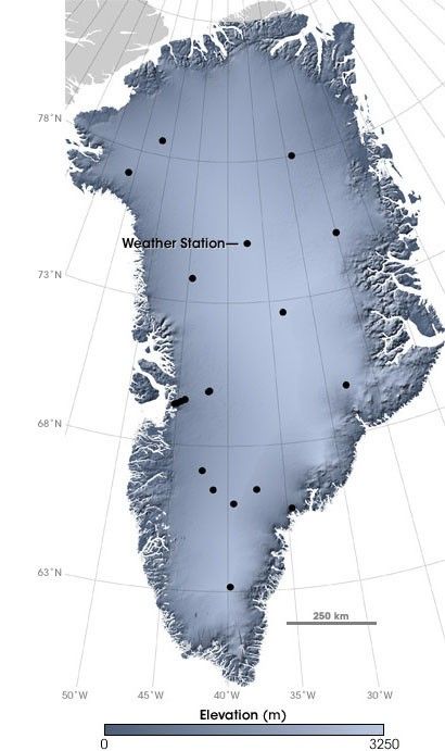 Answers require data. Through the 1990s, data on weather, climate, and ice had only been collected for short periods of time at widely scattered locations on the ice sheet. The primary goal of Abdalati and his colleagues during their Greenland expeditions was to augment their meager Greenland ice sheet datasets by collecting ground-based and aircraft data that would help them to understand the measurements made by early generations of Earth-monitoring satellites and to figure out what was happening to the ice sheet. He and other researchers set up observation stations on the ice sheet to record when the ice began to melt at particular places, how long the melt lasted, and how much ice melted during this period.