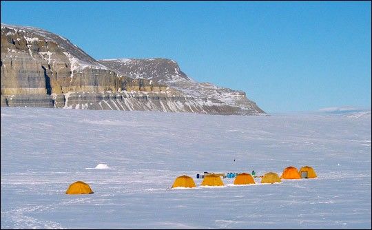 Even during these “ideal” spring months, the ice sheet is not exactly hospitable. Heavy boots, multiple layers of clothing, and thick mittens make movement awkward. Even the simplest of tasks requires thought, planning, and considerable effort.