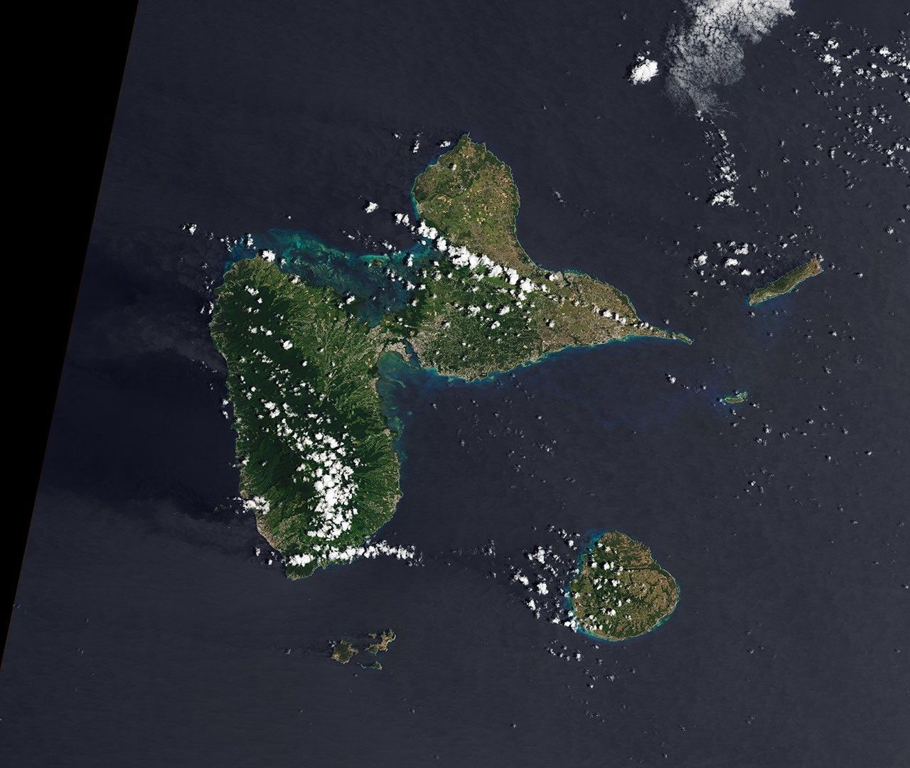 Several of the islands, including Basse-Terre and Grand-Terre, appear in these images acquired on April 4, 2022, by the Operational Land Imager-2 (OLI-2) on Landsat 9.