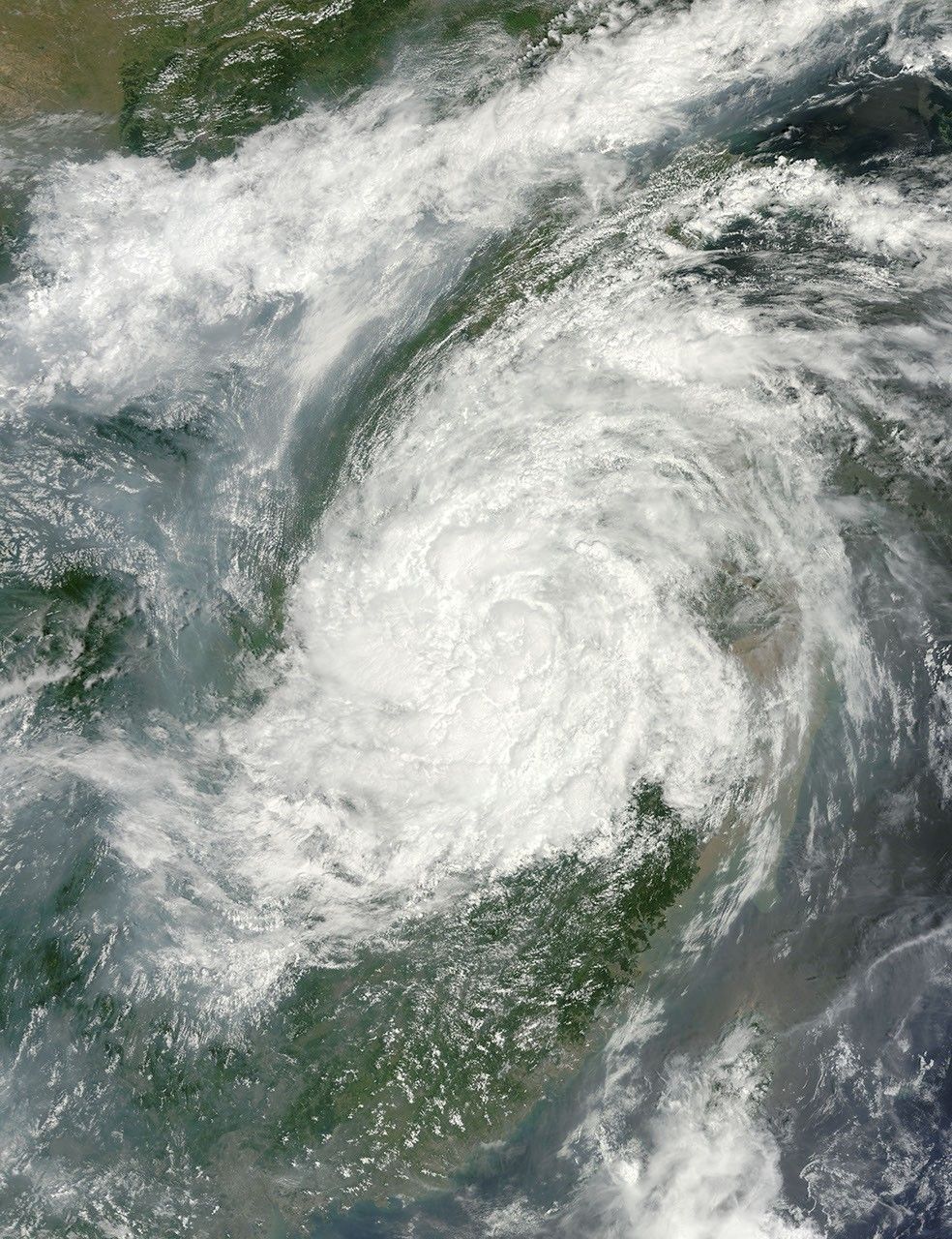 The Moderate Resolution Imaging Spectroradiometer (MODIS) on NASA’s Terra satellite captured this natural-color image of Haikui’s remnants on August 9, 2012. By then, the center of the storm was west of Shanghai. Although Haikui lacked a clear eye, it retained the spiral shape typical of a strong tropical storm.