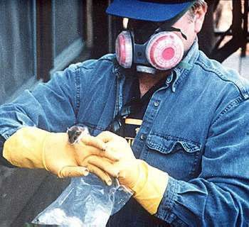 - If you find rodent droppings, don't sweep! Instead, carefully wet the area with detergent or disinfectant, pick up the contaminated materials with a damp towel, then mop or sponge the area with disinfectant.
