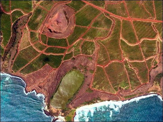 NASA and University researchers recently used an uninhabited aerialvehicle (UAV) to monitor a coffee plantation from the air—even thoughthe sky was 80% covered by clouds. The Pathfinder Plus UAV cruisedover the Hawaiian plantation for four hours, collecting over 300 images.Controllers directed the UAV to areas with breaks in the clouds, whichallowed the researchers to create a nearly cloud-free composite image (shownabove).