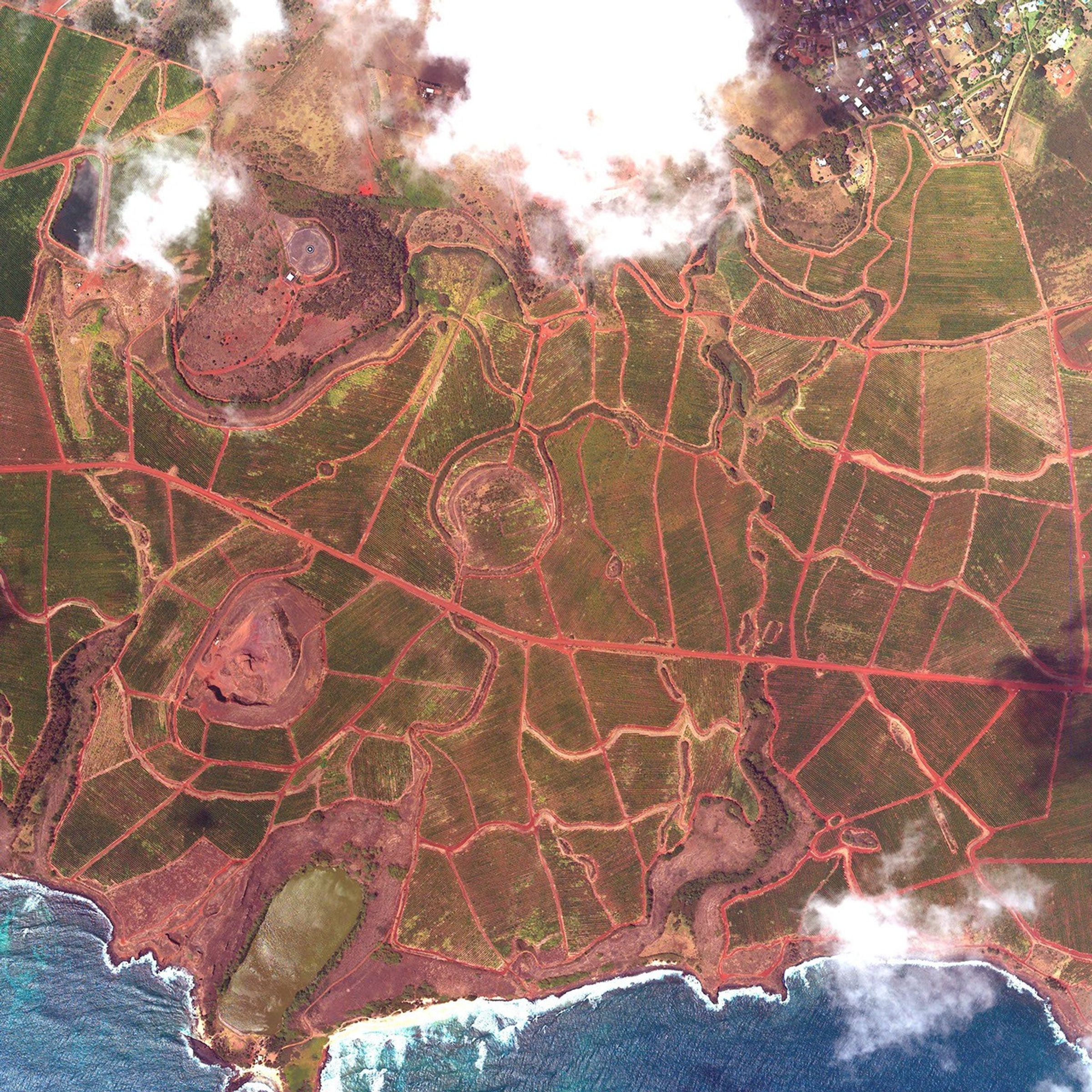 NASA and University researchers recently used an uninhabited aerialvehicle (UAV) to monitor a coffee plantation from the air—even thoughthe sky was 80% covered by clouds. The Pathfinder Plus UAV cruisedover the Hawaiian plantation for four hours, collecting over 300 images.Controllers directed the UAV to areas with breaks in the clouds, whichallowed the researchers to create a nearly cloud-free composite image (shownabove).
