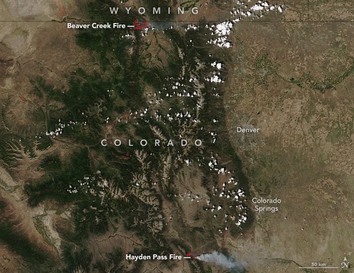 Colorado’s Beaver Creek and Hayden Pass fires continued to burn in mid-July 2016.