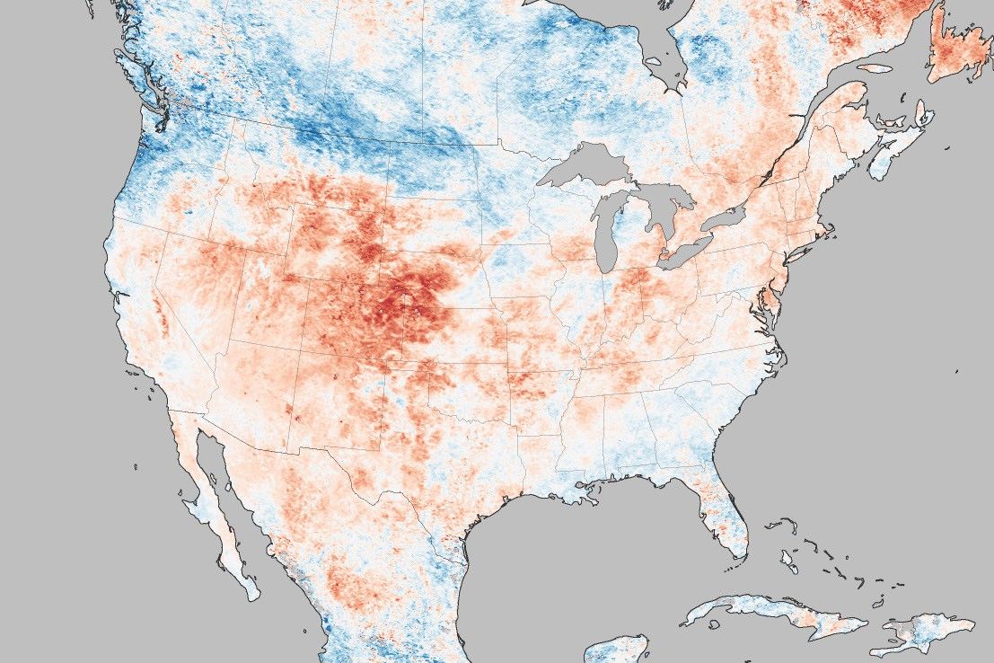 The intensity and scope of the heat wave in the western United States is visible in this map of land surface temperature anomalies for June 17–24, 2012. Based on data from the Moderate Resolution Imaging Spectroradiometer (MODIS) on NASA’s Terra satellite, the map depicts temperatures compared to the 2000–2011 average for the same eight day period in June.