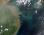 The heavy load of sediments carried by the Yangtze River into the East China Sea colored the waters along the Chinese coastline light brown on April 12, 2002. This true-color image was acquired by the Moderate-resolution Imaging Spectroradiometer (MODIS), flying aboard NASA’s Terra satellite.