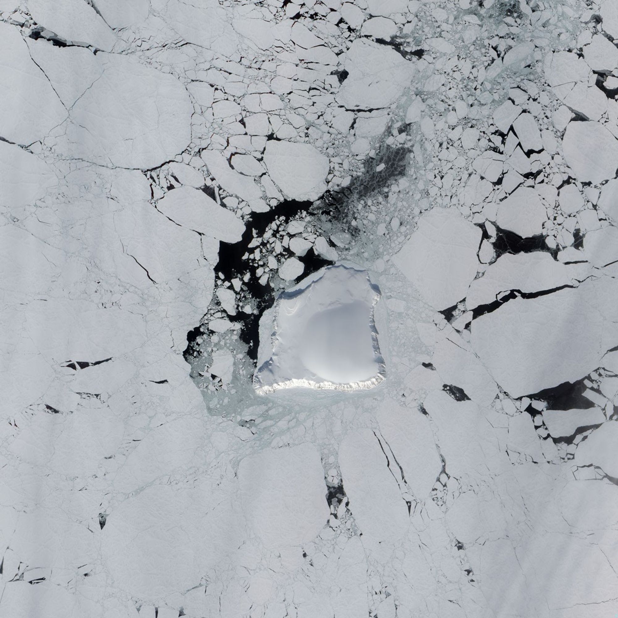 The Advanced Land Imager (ALI) on NASA’s Earth Observing-1 satellite captured this image of Henrietta Island on April 30, 2009. In this natural-color image, the island casts shadows to the north, thanks to the Sun’s low angle and the island’s own steep, rugged coastline. Inland, an icy dome covers most of the island, its southern surface slightly illuminated. DeLong sketched the island’s gently sloping surface on his expedition.