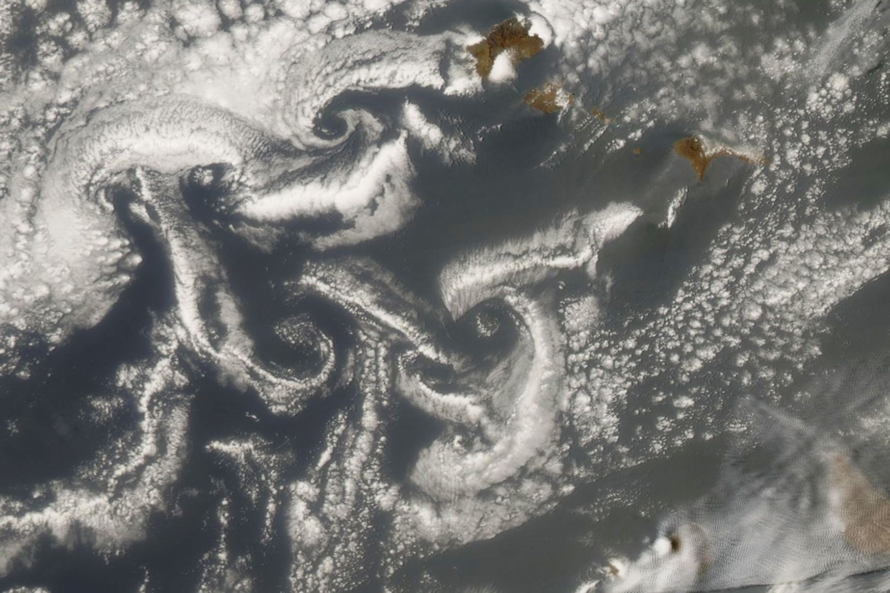 Several satellites have captured images of the dust crossing the Atlantic. NOAA shared a striking image from GOES-EAST on June 27, 2018. The Moderate Resolution Imaging Spectroradiometer (MODIS) sensors on the Terra and Aqua satellites also imaged the dust several times. On June 24, 2018, the MODIS on Aqua acquired the image below, which shows clouds swirling into an eye-catching pattern as winds flowed around the Cape Verde islands. The entire scene is hazy because of the dust.