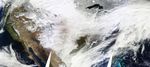 The Moderate Resolution Imaging Spectroradiometer (MODIS) on NASA’s Terra satellite took these composite images during three separate overpasses on February 2. The top image shows the United States in photo-like true color. The lower image was made with both visible light and infrared light to distinguish between clouds and snow. Snow is turquoise, while clouds are white and pale blue. The exception is a turquoise streak of icy clouds over Alabama, Georgia, and South Carolina.