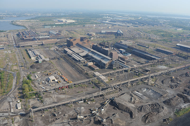 The problem of stormwater runoff is particularly acute and complex in Baltimore because of the city’s long history as an industrial center. Large industrial sites (some active, some abandoned) are common in parts of the city. Sparrows Point (see photograph below), once a Bethlehem Steel factory, persists as one of the largest impervious surfaces in the city. Water quality tests show toxic chemical contaminants are commonly found near Sparrows Point, including polyaromatic hydrocarbons, benzene, chromium, and lead.