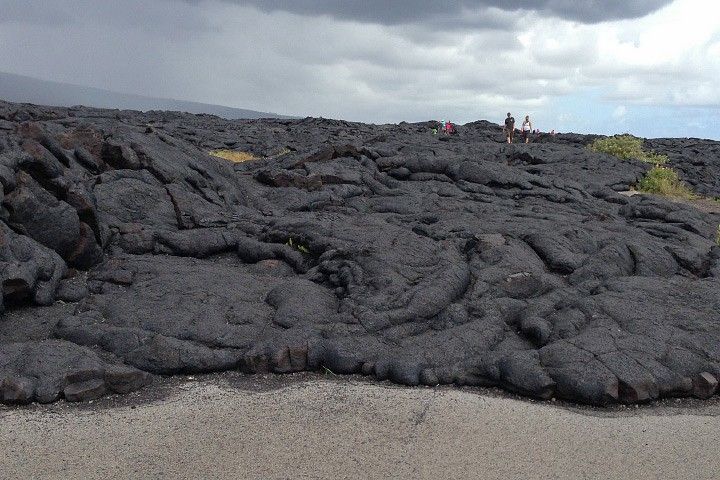 Varied land surfaces have distinct spectral signatures. Fresh basalt lava and asphalt reflect different amounts of infrared light, even though they appear similar in visible light. (Photograph ©2012 Robert Simmon. Figure by Robert Simmon, using data from the USGS Digital Spectral Library.)