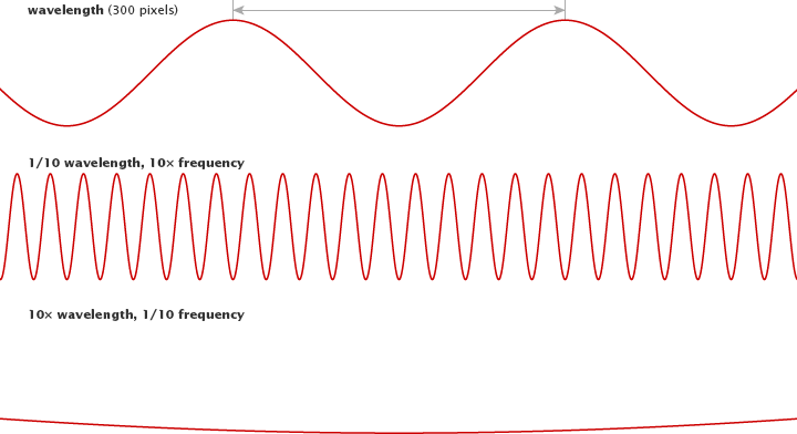 Wavelength is the distance from one peak to another, representing a single cycle of a wave. (NASA Earth Observatory image by Robert Simmon.)