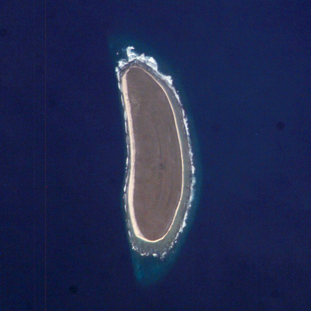 The island is composed of coral fragments and is surrounded by an active fringing reef. White breakers encircling the island indicate the position of the reef. Astronauts aboard the International Space Station photograph numerous reefs around the world as part of a global mapping and monitoring program. High-resolution images such as this one are used to update geographic maps of reefs and islands, assess the health of reef ecosystems, and calculate bathymetry of the surrounding ocean bottom.