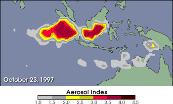 Different parts of the world feel the effects of the El Niño-Southern Oscillation ocean cycle more or less strongly. Indonesia is one of the places strongly influenced by it; El Niño produces drought across most of the region. In late 1997, the drought was hammering the whole of Indonesia, with rainfall deficits of 400-500 millimeters in many places. In the midst of this exceptional drought, the growing use of fire as a forest and agricultural management tool in the region became disastrous. In the absence of sufficient caution, forest fires exploded across the dry landscape.