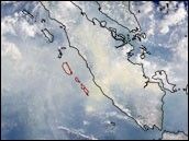 The local reports and the SeaWiFS imagery confirmed that there was indeed a unusual red tide around the Mentawai Islands in late 1997, which left only one question: what caused it? If the dipole had been occurring for 7,000 years without killing off the reefs, then clearly some other event must have coincided with the upwelling that had never occurred in at least 7,000 years. Since the Mentawai Island region of the Indian Ocean is an iron-limited region, it wasn’t too much of a leap to assume that some sort of massive iron fertilization had occurred. Abram didn’t have to hunt very long to identify a potential culprit: a staggering and probably unprecedented number of forest fires burning just to the east in the jungles of Sumatra and East Kalimantan, Borneo.