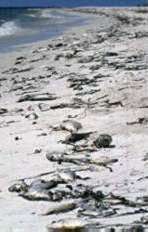 On April 2, 2002, Texas Parks and Wildlife Department staff found millions of small dead and dying menhaden fish along a 15-mile stretch of beach on North Padre Island. During February 2002, approximately 1,000 tons of rock lobsters beached themselves at Elands Bay in South Africa. And in 1996, almost 150 Florida manatee — over five percent of the estimated population — died over a two-month period, beset by a pneumonia-like respiratory syndrome. What caused these deadly events?