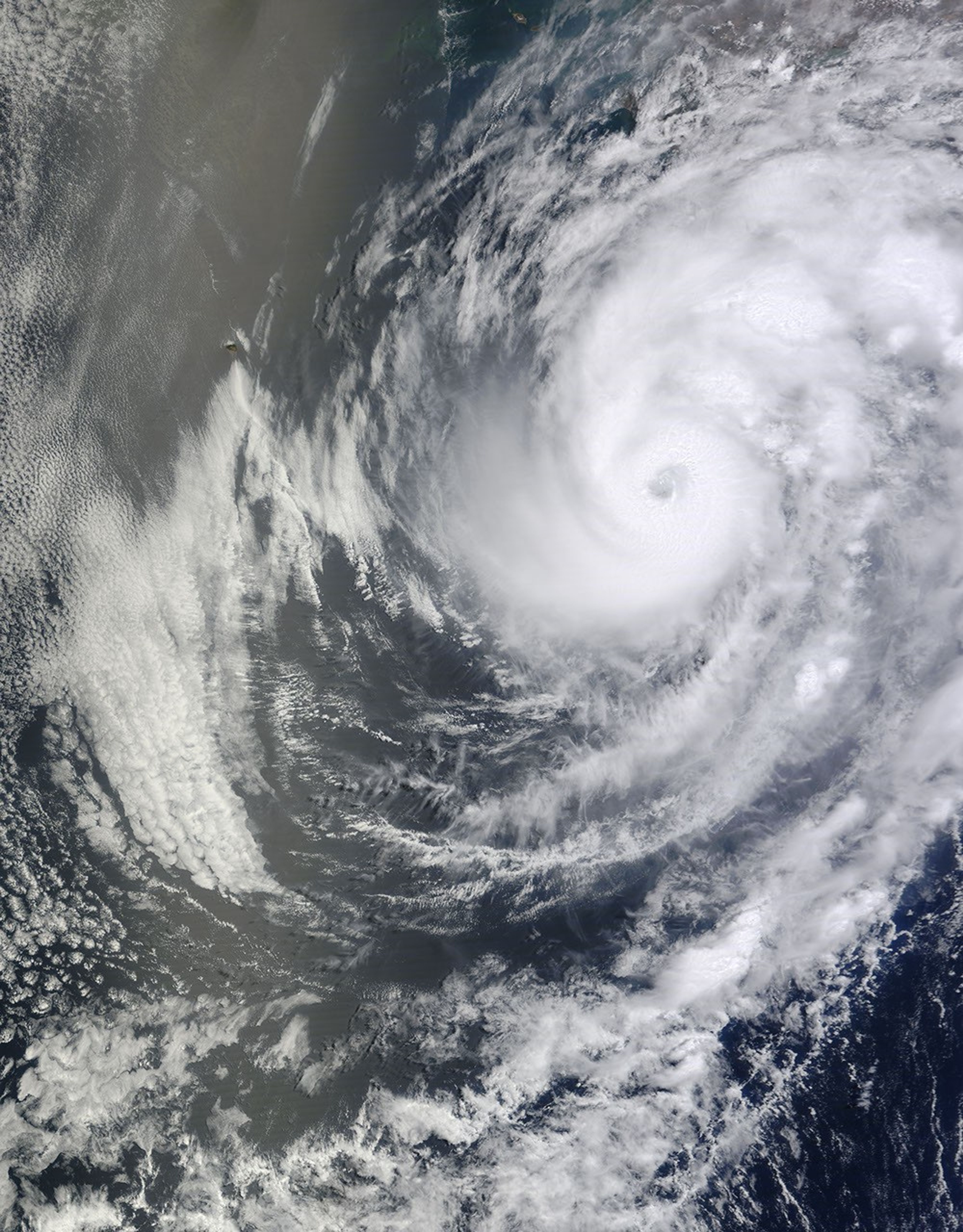 The Moderate Resolution Imaging Spectroradiometer (MODIS) on NASA’s Terra satellite captured this natural-color image around 11:15 a.m. PDT on May 24. Having organized since the previous day, Bud sported a distinct eye characteristic of strong storms.