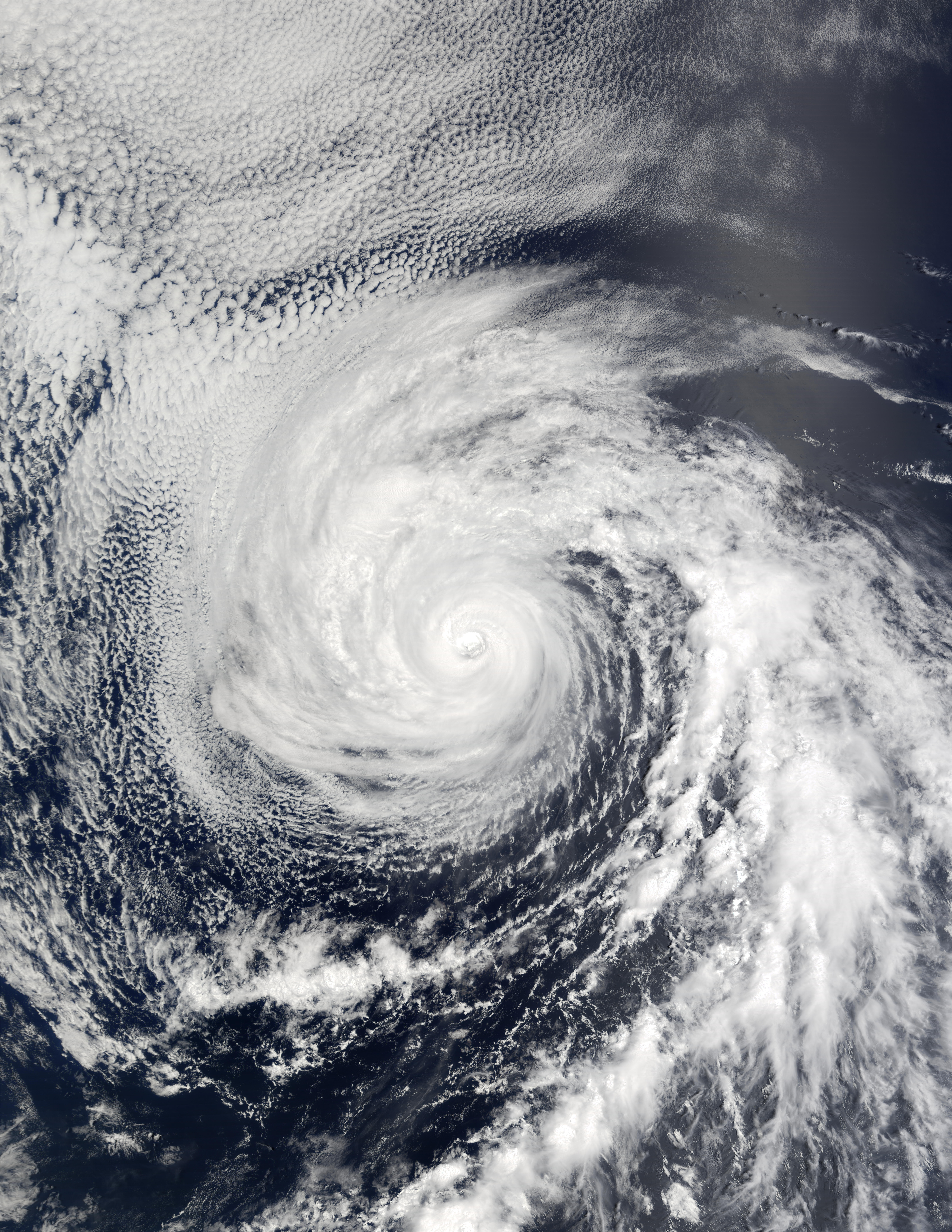 Hurricane Fausto weakened as it moved westward in the eastern Pacific Ocean, and by the time this image was acquired on August 25, 2002, it had dropped from Category 4 to Category 2 hurricane status. This image was acquired by the Moderate Resolution Imaging Spectroradiometer (MODIS) on the Terra satellite.
