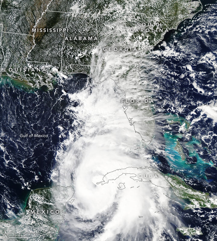 The Moderate Resolution Imaging Spectroradiometer (MODIS) on NASA’s Aqua satellite acquired this natural-color image of Hurricane Michael on the afternoon of October 8, 2018.