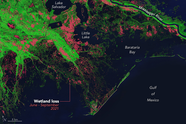 - NASA Earth Observatory (2021, September 11) A Changed Landscape in Southern Louisiana. Accessed May 10, 2024.