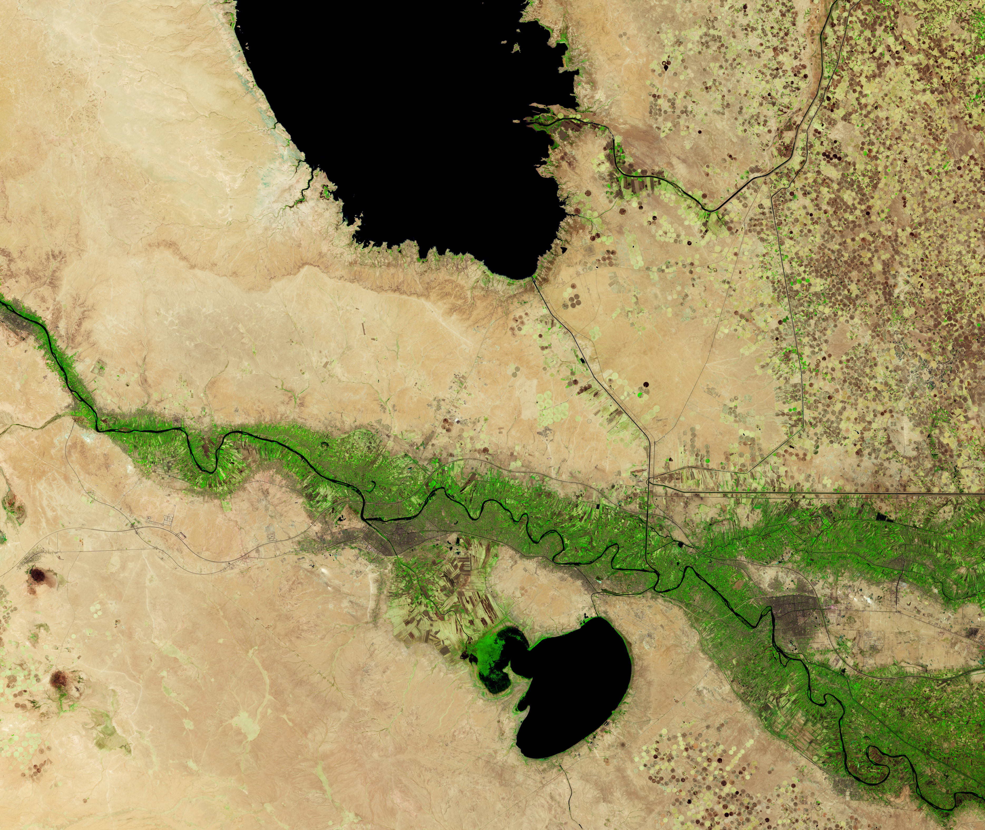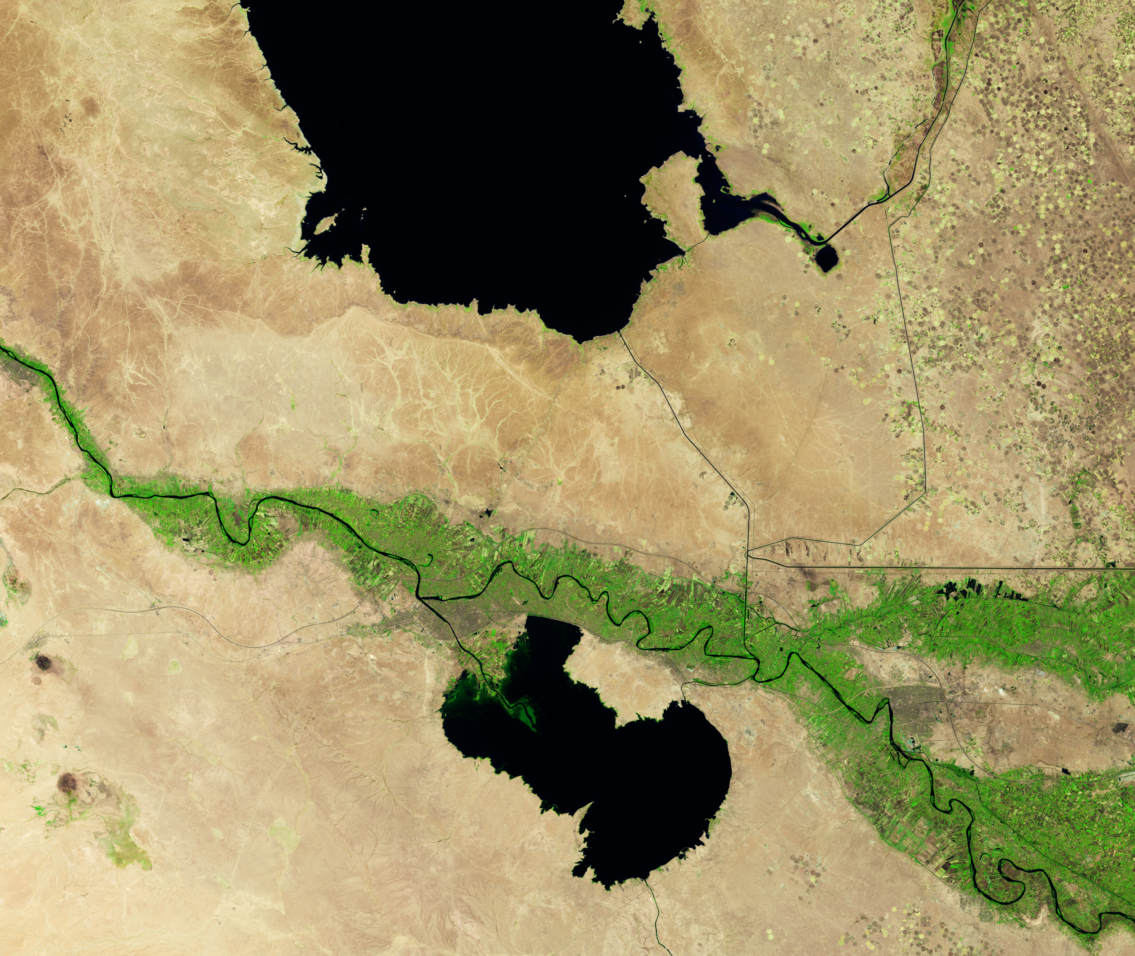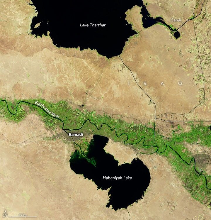 In the short term, Njeban hopes that winter rains will help and that drought impacts can be mitigated by keeping some water in the lake, regulating agricultural withdrawals, and encouraging water-saving practices. “In the long term, integrated management among the Habaniya, Razzaza, and Tharthar reservoirs is essential for achieving sustainable regional water balance,” Njeban said. Satellite data, he noted, play a key role in doing that. “Landsat has proven highly useful for tracking changes in the surface area, shoreline position, and turbidity of all of Iraq’s major lakes.”
