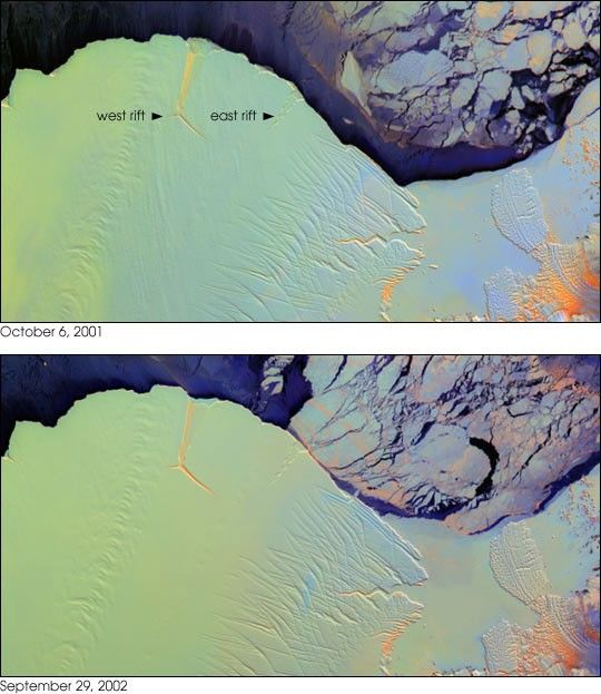 The Gulf of Alaska is extremely cloudy, especially in June and July of eachyear. This image was acquired on July 29, 2002, and is the only example foundso far of a satellite image of the patch. Twenty days after the first ironinjection, the patch is clearly visible as an area about 30 km across. The patch remained surprisingly compact through this period.