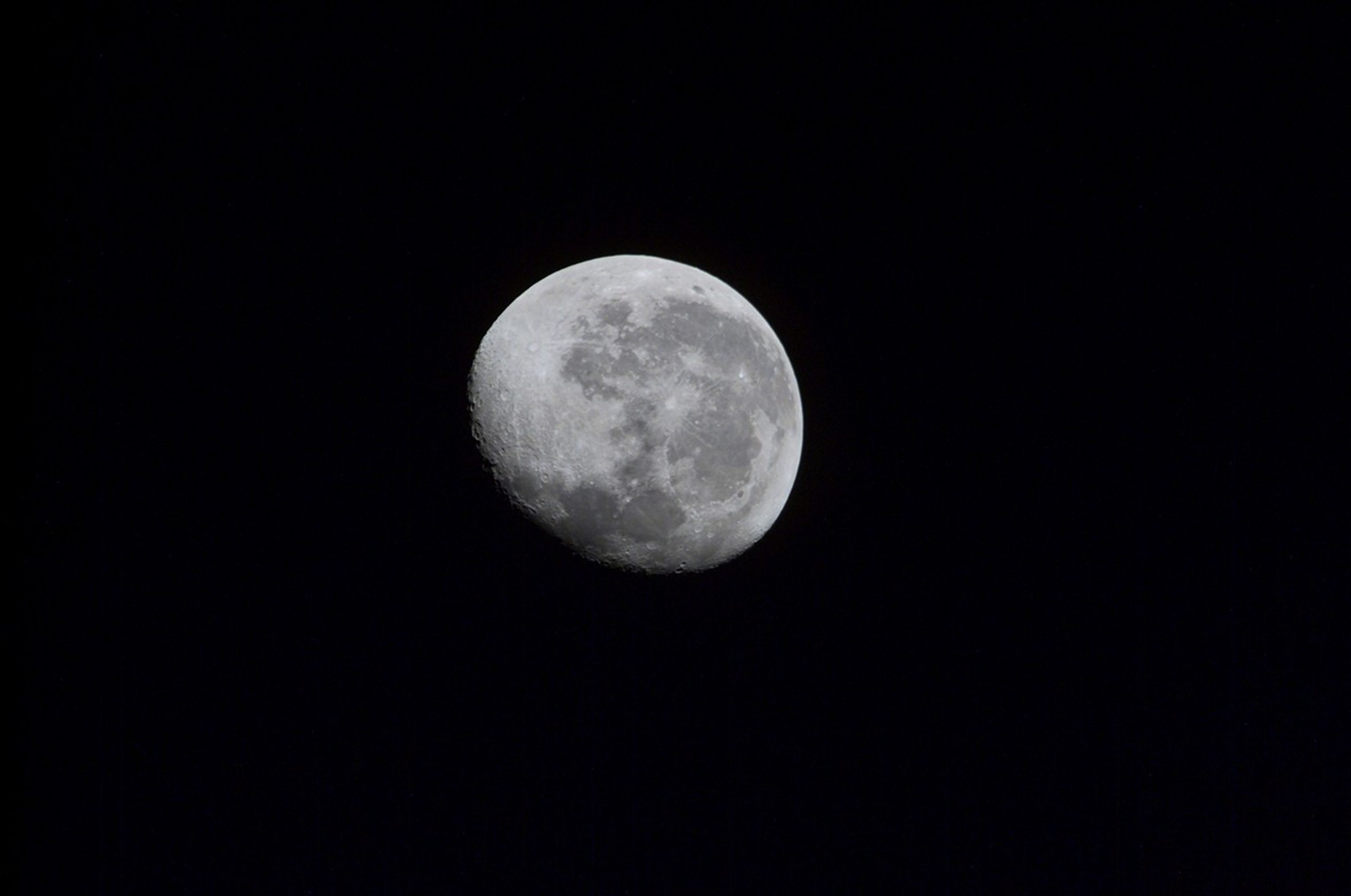 Inspired by the nearly-full moon, space station astronauts used an 800 mm lens to study the craters and mare. This view, taken October 5, 2001, is centered on Crater Copernicus, surrounded by the Mare Serenitatis and Mare Tranquillitatis (Sea of Serenity and Sea of Tranquility), Mare Imbrium (Sea of Rains), Oceanus Procellarum (Ocean of Storms) and Mare Nubium (Sea of Clouds). The bright crater and ejecta trails of Tycho dominate this near-side view. For scale, the crater of Tycho is 85 km in diameter.