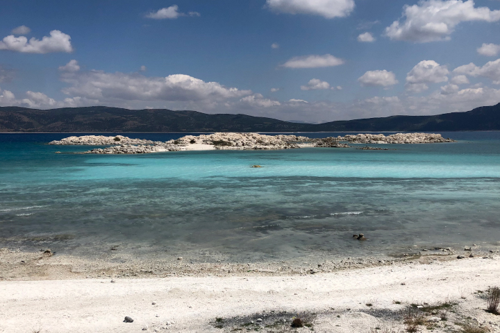 In August 2019, Garczynski took this photo of an exposed microbialite island on Lake Salda. Collaborating with colleagues at the Istanbul Technical University, the Purdue research team spent almost a week surveying the lake’s perimeter and surrounding area. Garczynski said these islands are expected to erode over time and will eventually be transported, reworked, and deposited as beach sediments along the shoreline.