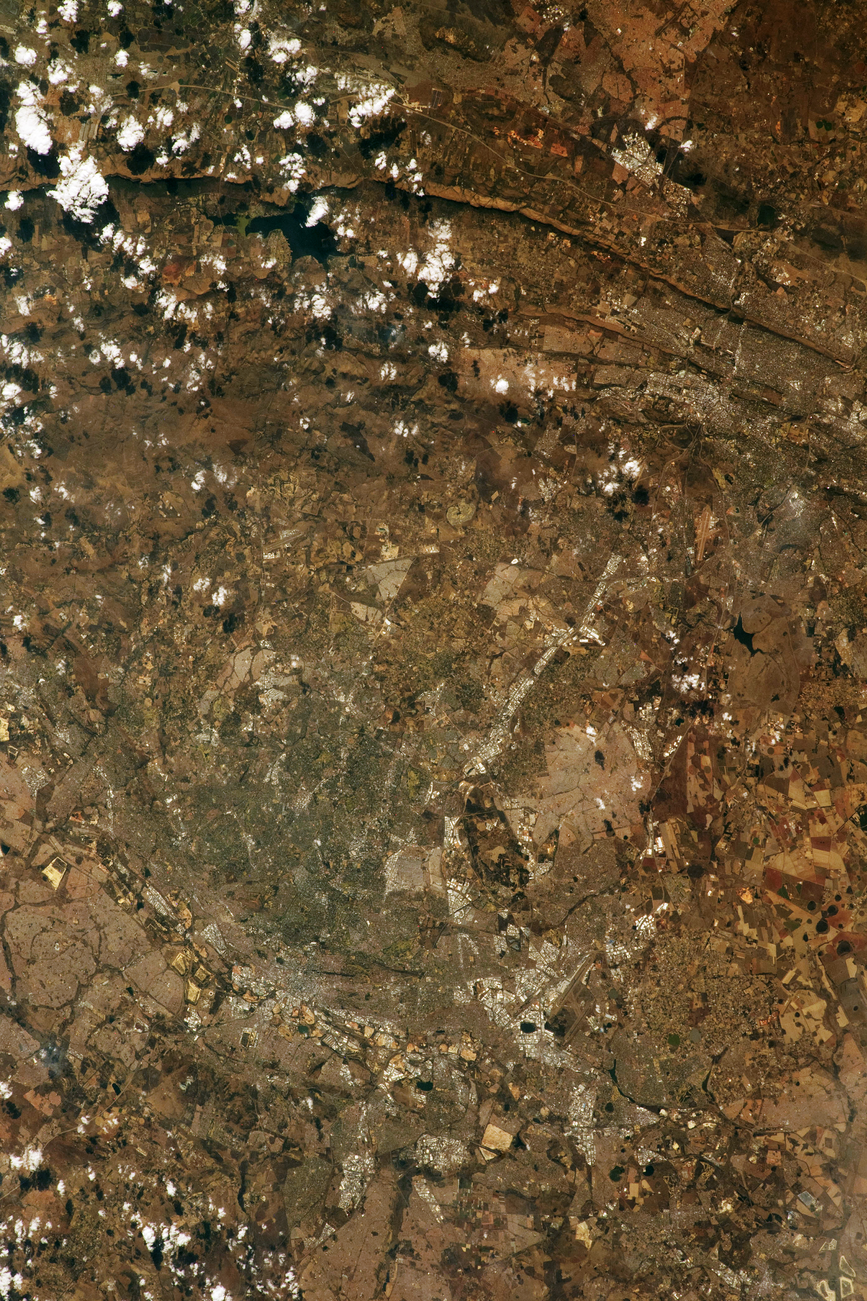 An astronaut onboard the International Space Station (ISS) took this photograph of South Africa’s industrial and mining heartland, from the gold-mining city of Johannesburg to one of the nation’s capital cities, Pretoria.