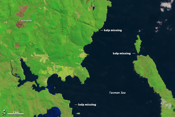 For now, researchers are continuing to use Landsat to monitor the kelp forests and decipher trends that may shed more light on what is happening off of Tasmania and California. Through a project known as “Floating Forests,” they have enlisted citizen scientists to help understand the decline in kelp. To learn more about how to participate in the project, visit their web page. To read more about kelp studies by satellite, check out Finding Floating Forests.