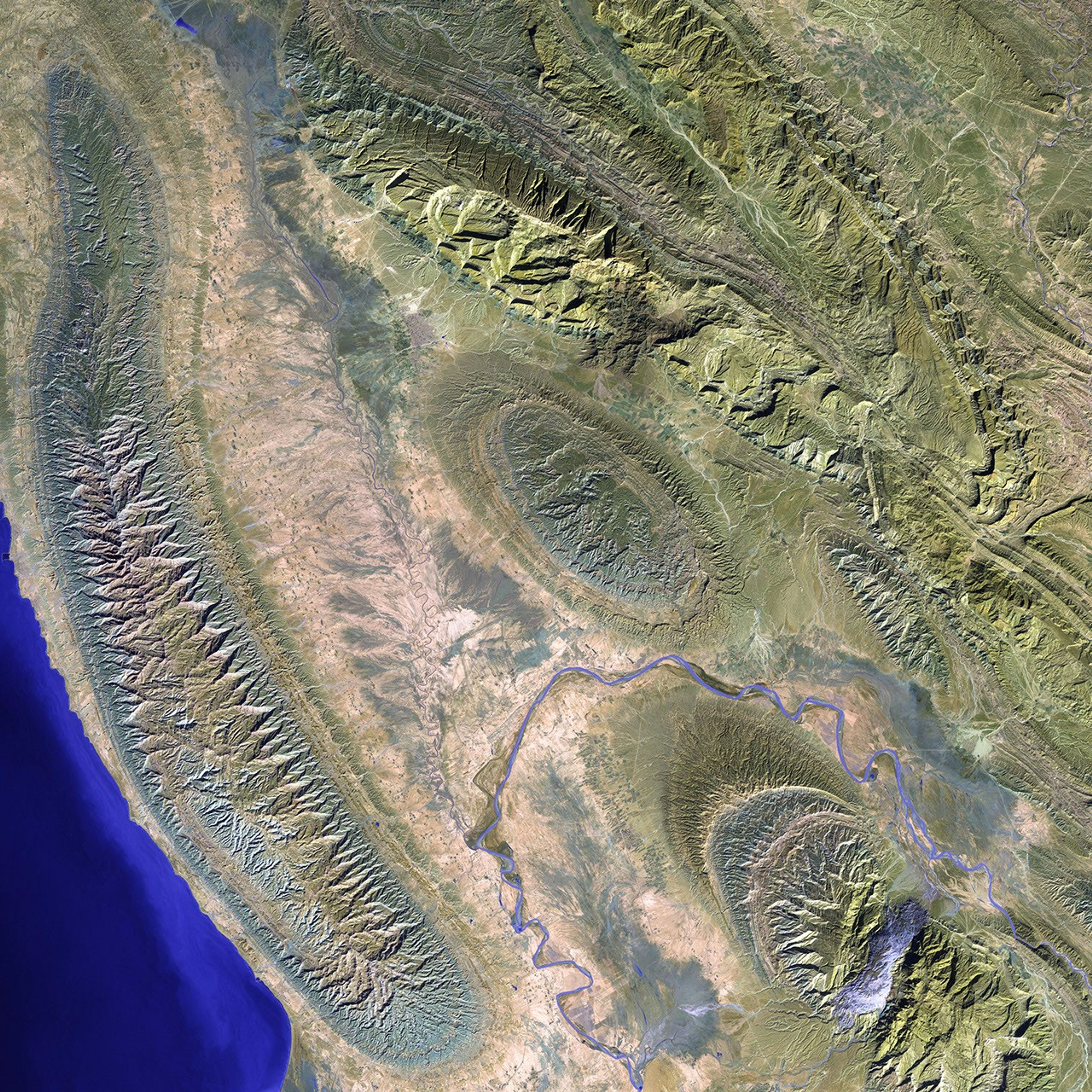 The Mand River and the small town of Konari nestle in the Zagros Mountains in western Iran.