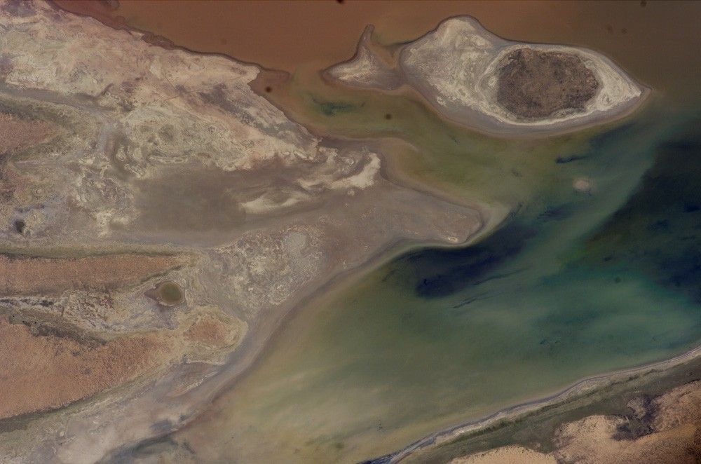 Astronaut photographs ISS012-E-6468, ISS012-E-6469 were acquired November 3, 2005, with a Kodak 760C digital camera using a 180 mm lens. Astronaut photographs ISS012-E-20585 and ISS012-E-20586 were acquired March 9, 2006, with a Kodak 760C digital camera using a 400 mm lens. All images are provided by the ISS Crew Earth Observations experiment and the Image Science & Analysis Group, Johnson Space Center. The images in this article have been cropped and enhanced to improve contrast. The International Space Station Program supports the laboratory to help astronauts take pictures of Earth that will be of the greatest value to scientists and the public, and to make those images freely available on the Internet. Additional images taken by astronauts and cosmonauts can be viewed at the NASA/JSC Gateway to Astronaut Photography of Earth.