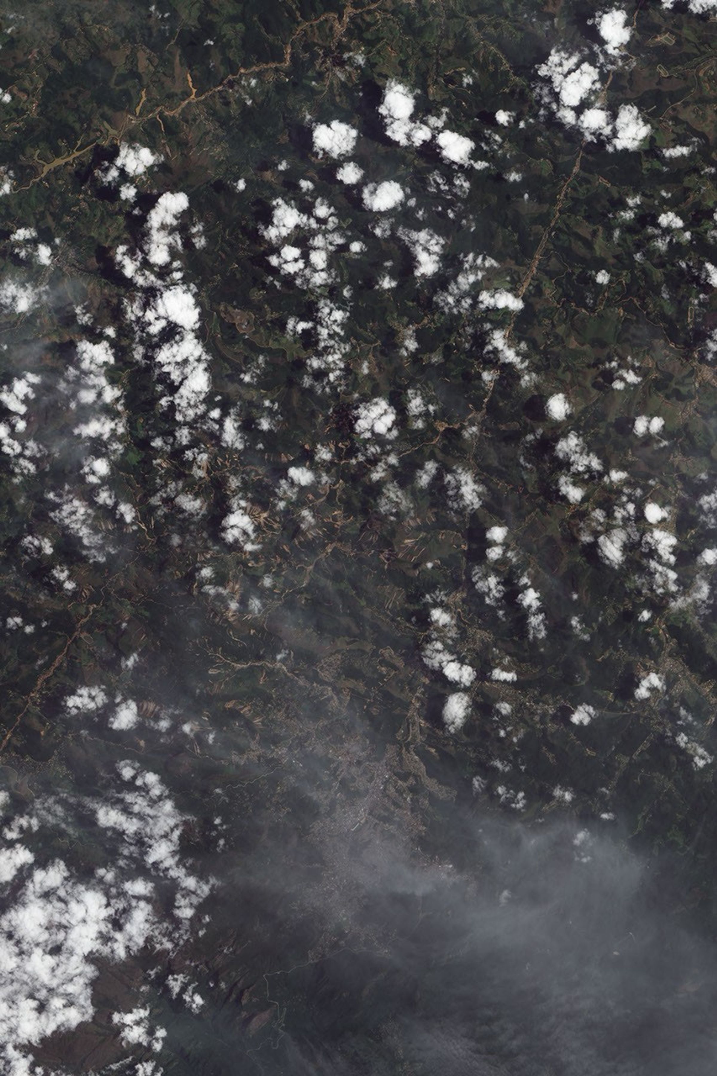 The Advanced Land Imager (ALI) on NASA’s EO-1 satellite captured these true-color images of the hills north and west of Teresópolis, Brazil, on February 2, 2011 (top), and May 24, 2010. In both images, forested land is dark green, while land that has been cleared is light green. The 2011 image shows dozens of tan stripes where the hillsides have been overrun by mudslides, usually within or adjacent to those light green patches.