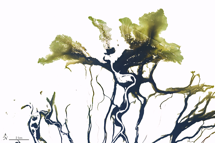 NASA Earth Observatory images by Joshua Stevens, using MODIS data from NASA EOSDIS/LANCE and GIBS/Worldview, and Landsat data from the U.S. Geological Survey. Story by Kathryn Hansen with image interpretation by Ingmar Nitze/Alfred Wegener Institute Helmholtz Centre for Polar and Marine Research, and Hajo Eicken/University of Alaska Fairbanks.