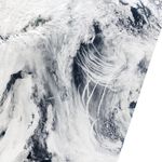 There are numerous cloud condensation nuclei over the North Pacific. There is always plenty of moisture in Earth’s atmosphere, but those water molecules need slightly larger, flatter surfaces to bond, accumulate, and condense into water droplets. Particles both natural (salt spray, dust, ash) and man-made (pollutants like sulfur dioxide or black carbon) can seed the formation of clouds. That is what large ships do sometimes as they cross the ocean, as shown in this March 2009 image from the MODIS instrument on the Terra satellite. The N-shaped clouds over the Pacific are what scientists call ship tracks—places where the exhaust emissions from the ships rise into the atmosphere and combine with water molecules to form linear clouds.