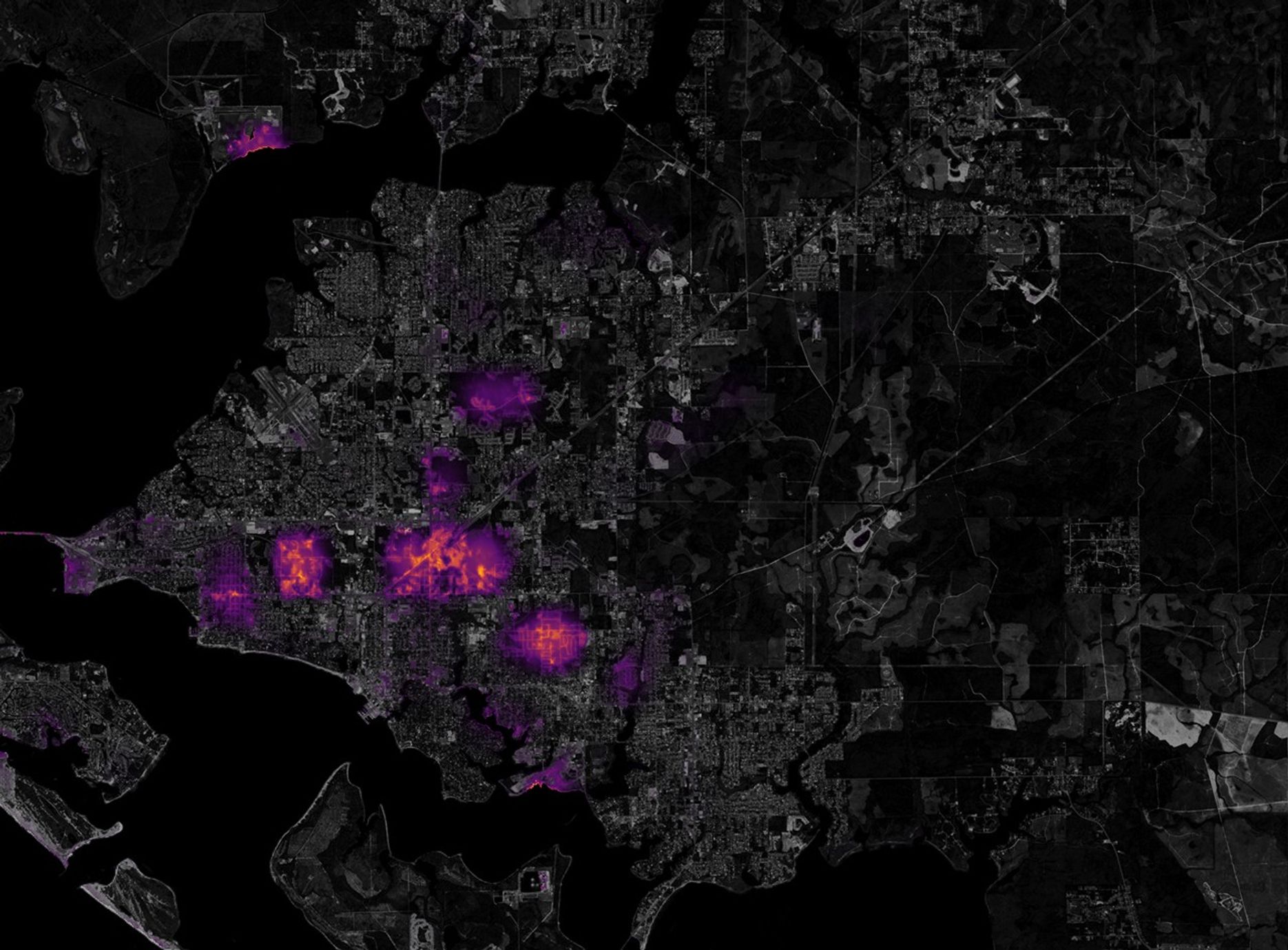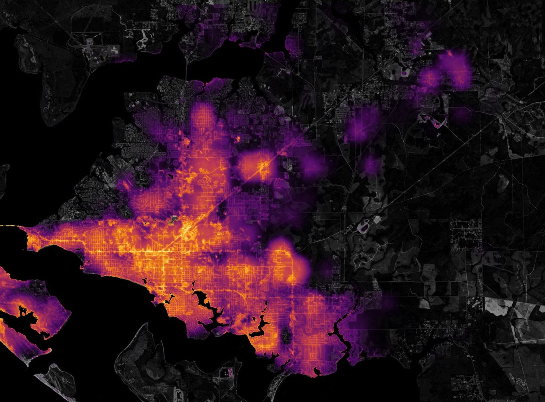 To make the VIIRS data more useful to first responders, the Goddard team scaled the observations onto a base map that emphasizes the locations of streets and neighborhoods. The base map makes use of data collected by the Landsat and Sentinel-2 satellites. It also incorporates high-resolution data from OpenStreetMap to show the precise locations of streets and neighborhoods.