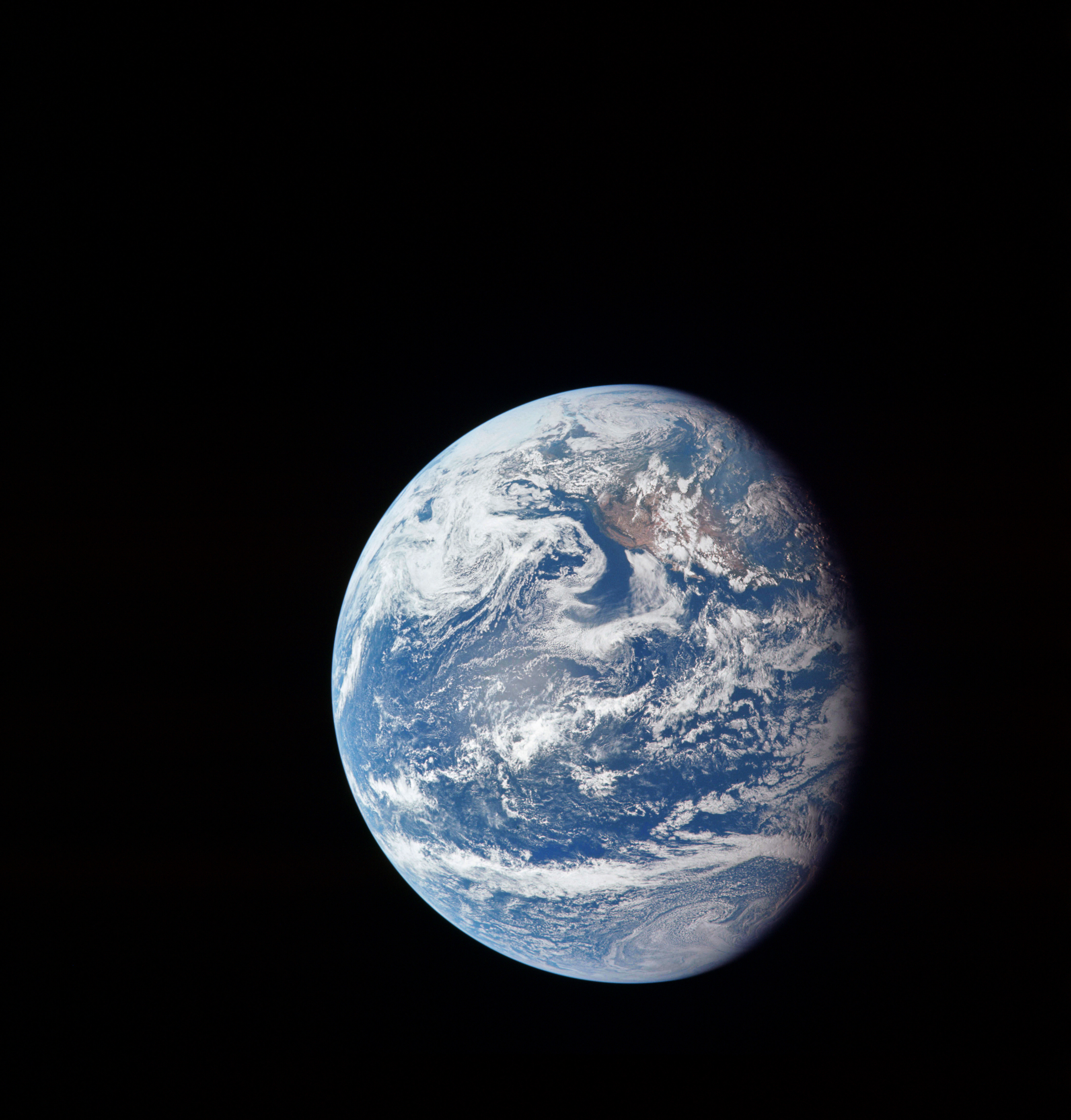 Aldrin: Hey, Charlie, I can see the snow on the mountains out in California, and it looks like LA doesn’t have much of a smog problem today.Duke: Roger, Buzz. Copy. Looks like there’s a good view out there then.Aldrin: Charlie, with the monocular, I can discern a definite green cast to the San Fernando Valley.Duke: How’s Baja California look, Buzz?Aldrin: Well, it’s got some clouds up and down it, and there’s a pretty good circulation system a couple of hundred miles off the west coast of California....Okay, Houston. You suppose you could turn the Earth a little bit so we could get a little bit more than just water?Duke: Roger, 11. I don't think we got much control over that. Looks like you'll have to settle for the water.