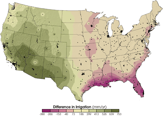 Why is important to know how much water we use to irrigate our lawns? Across the United States, water supplies are increasingly under pressure as populations grow. The water table has dropped hundreds of feet in many locations, and rivers and streams go dry for long stretches in various seasons as water is siphoned off for agriculture, industry, and individual residences. All along the Atlantic seaboard from Florida to New York, saltwater is flowing into formerly freshwater aquifers and wells because we are pumping freshwater out faster than nature can put it back.