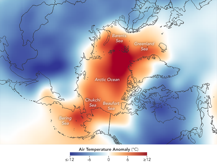 NASA Earth Observatory images by Joshua Stevens, using data from the National Snow and Ice Data Center and NCEP reanalysis data provided by the NOAA/OAR/ESRL PSD . Story by Kathryn Hansen with reporting by Maria-José Viñas/NASA’s Earth Science News Team.