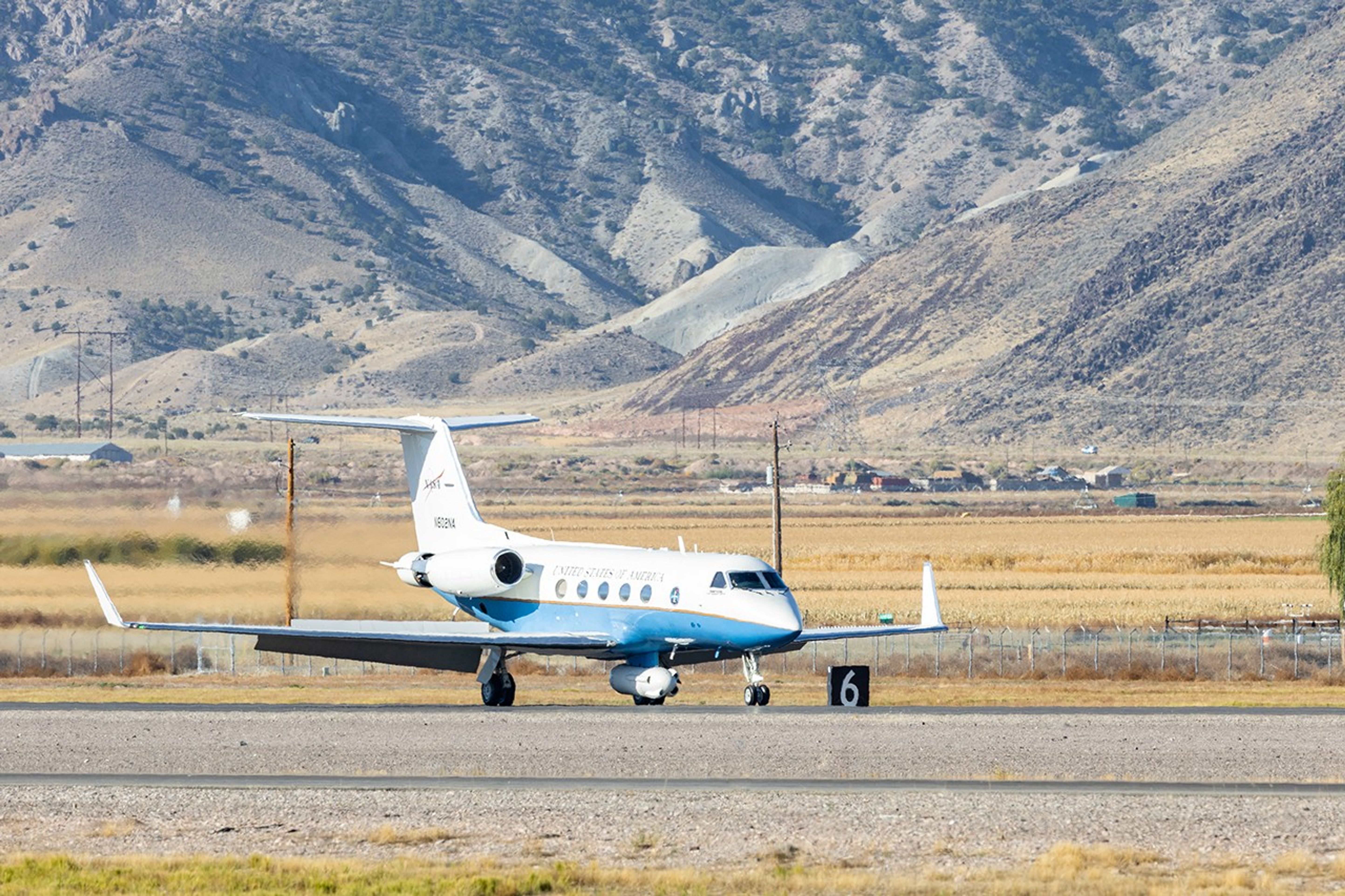 Three NASA aircraft arrived in Richfield for the burn. Their participation in FASMEE was a first for FireSense, a NASA project that includes field campaigns to evaluate and improve science resources delivered to operational fire agencies. One of the aircraft, NASA’s Gulfstream III, is pictured above at the Richfield Municipal Airport on October 17, 2023.