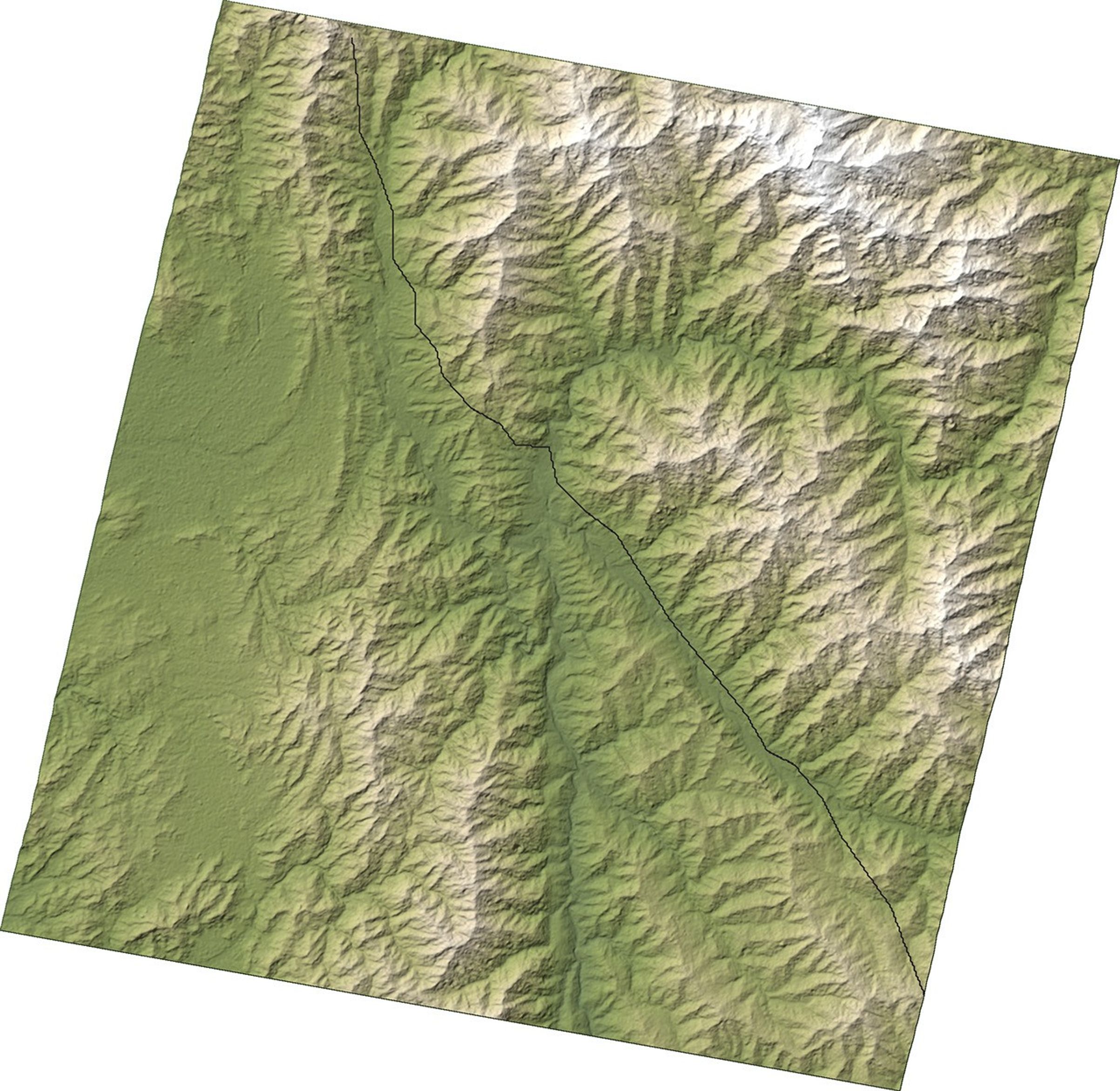 This image shows the location of the surface rupture based on comparison of pre-and post-quake images from the Advanced Spaceborne Thermal Emission and Reflection Radiometer (ASTER) on NASA’s Terra satellite. The fault trace, where ground movement was visible at the surface, is overlaid on a topographic image of the region based on ASTER digital elevation model (DEM) data.