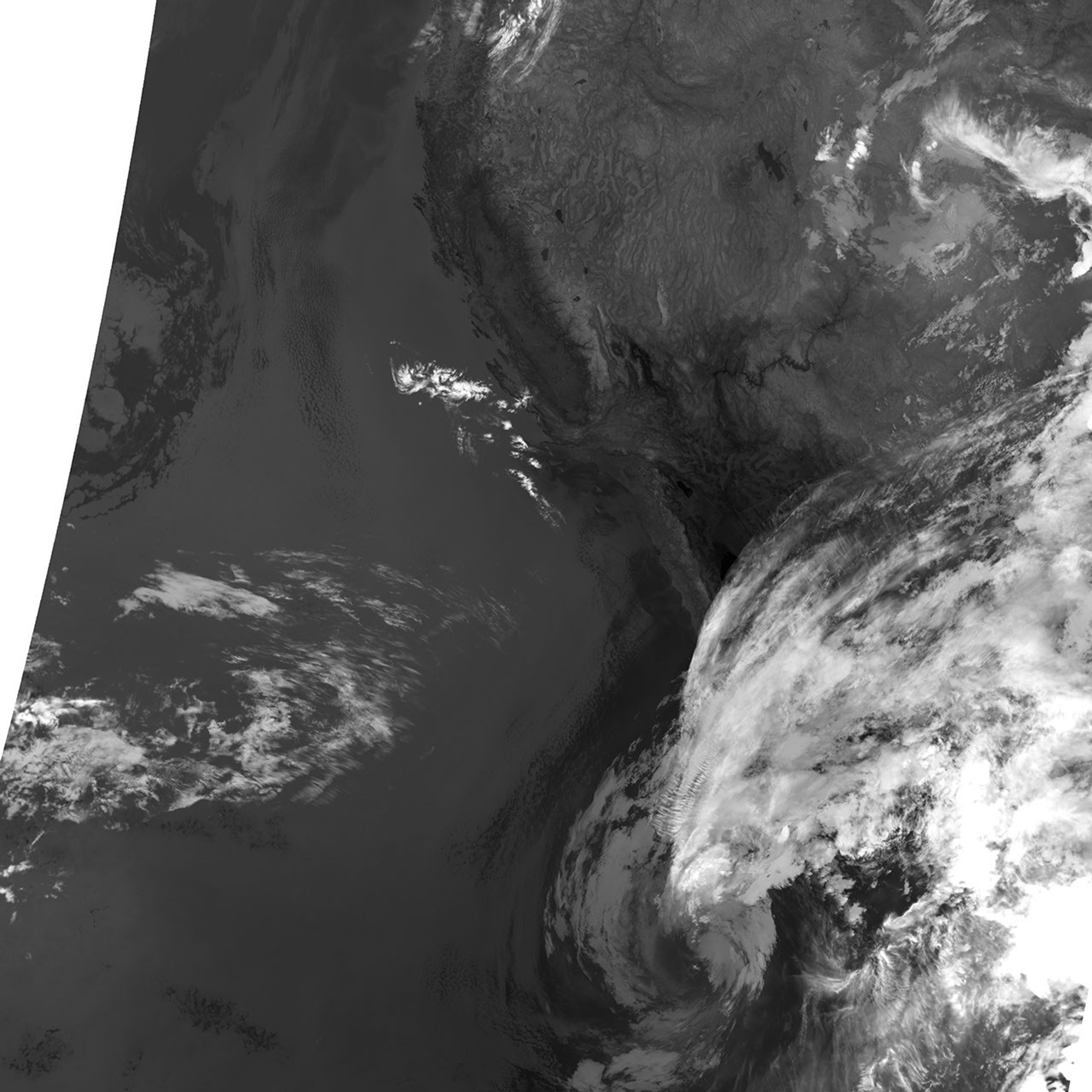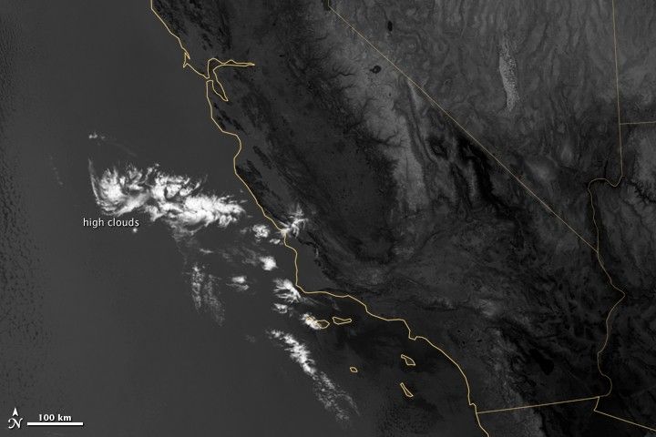 An irregularly-shaped patch of high clouds hovered off the coast of California, and moonlight caused the high clouds to cast distinct shadows on the marine layer clouds below. VIIRS acquired the image when the Moon was in its waxing gibbous phase, meaning it was more than half-lit, but less than full.
