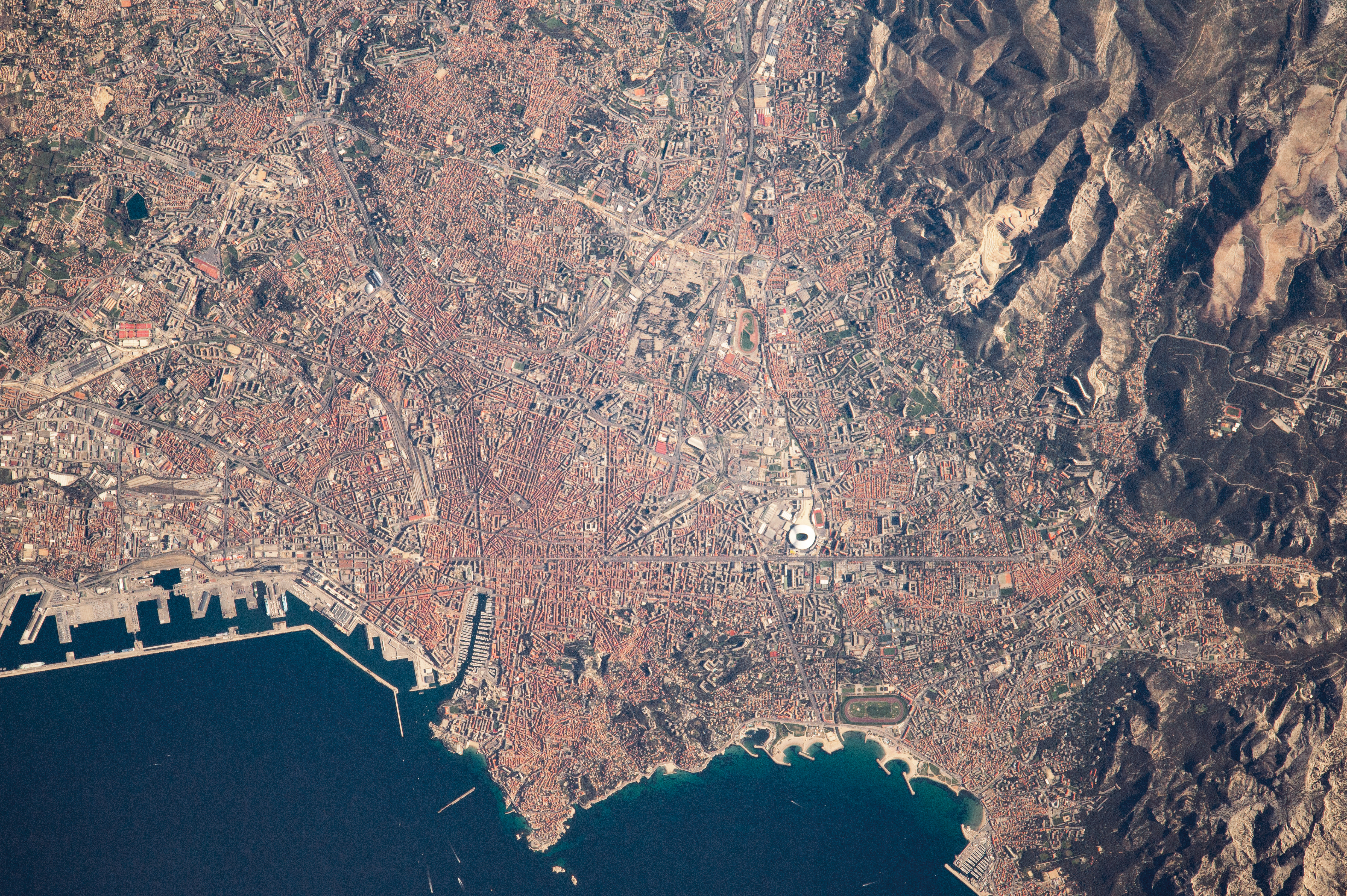 An astronaut aboard the International Space Station (ISS) shot this photograph of Marseille, the second largest city in France. Known as Massalia in the days of the Roman Empire, the city sits along the Mediterranean coast.
