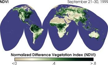 With the imaging data the MODIS and AVHRR instruments provide, scientists should be able to use these indices to get daily measurements of vegetation density over most of the Earth’s surface. The maps are helpful in monitoring and understanding environmental and climate changes such as deforestation and desertification as well as drought. The maps also play a major role in other types of satellite measurements. For example, they are crucial in helping scientists classify different types of vegetation over the world’s landscapes as well as detecting changes in land surface cover over time.